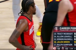 杰伦-格林火箭生涯总得分超越拉尔夫-桑普森 上升至队史第16位