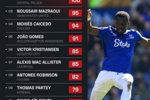 本赛季英超抢断次数:盖耶116次第一,马兹拉维第三、凯塞多第四